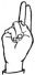 На ћирилици написано АНГЕЛИНА ЛУДОШКИ састоји се из 15 слова [?]. Исписано ћириличном једноручном азбуком за глувонеме: